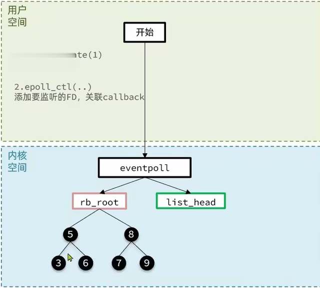 调用epoll_ctl向eventpoll中注册一个监听的fd,并且注册上fd对应事件的回调函数。