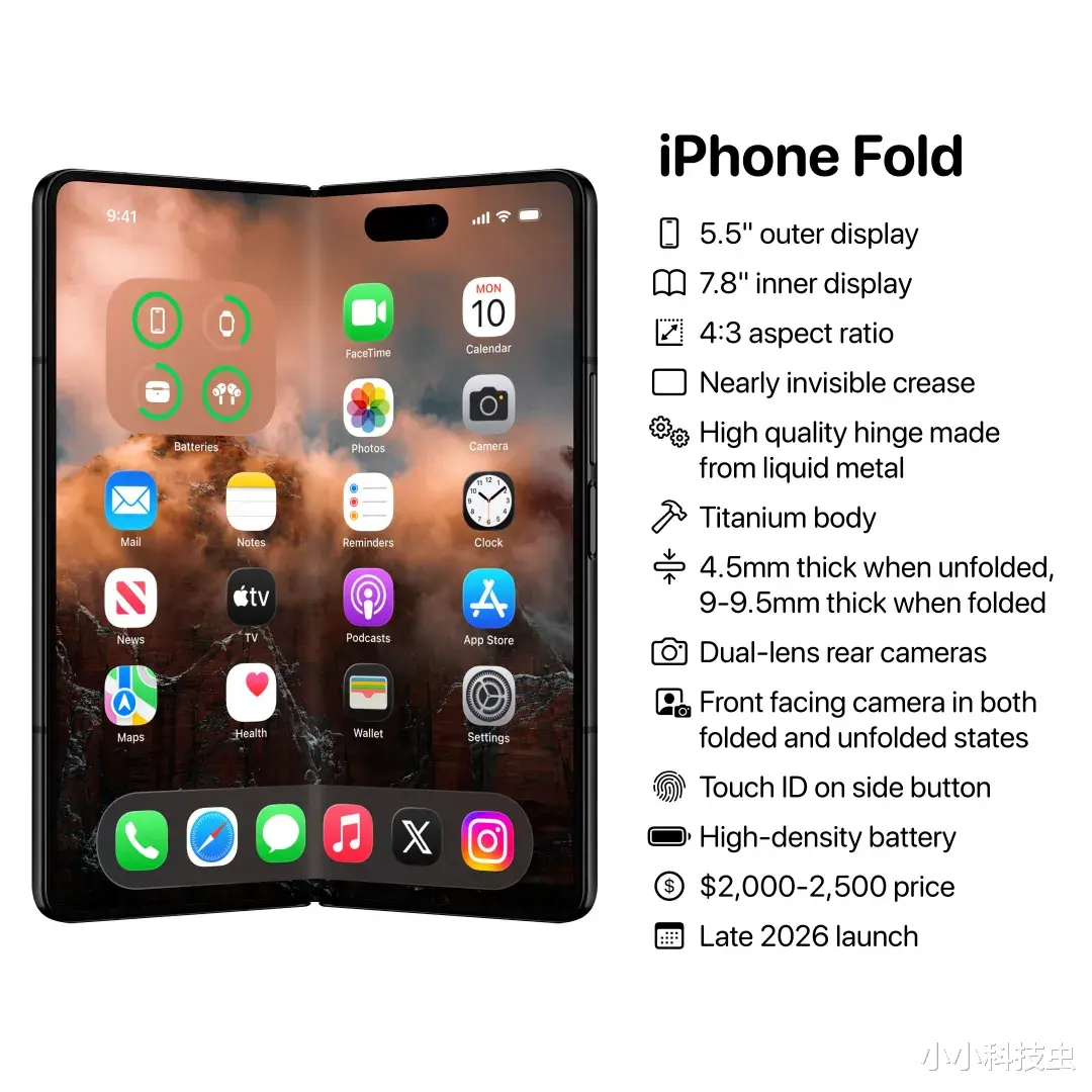 内部代号“iPhone Ultra”,按照消息来讲是采用书本一样的横向折叠方案。