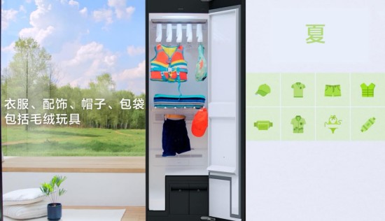 闲置不用时,三星AI神 黑钻衣物护理机摇身一变,便可化身收纳柜或者除湿机,堪称全面多能的生活搭子。健身结束后,护理运动装之余,还可将健身包、运动护腕护膝等不便挂在衣架上的物品,放在衣物护理机的多功能置物架,简单操作即可让机器内部空间井然有序,衣物拿取与护理更加从容。阴雨季宅家时,选择空间除湿功能并打开三星AI神 黑钻衣物护理机的门板,即可进行除湿,释放干爽空气,让健身后的休闲时光更加自在惬意、随心所欲。