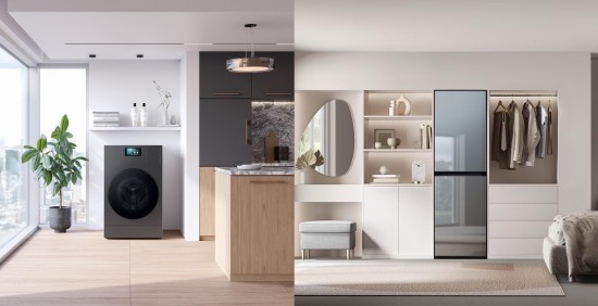 左为三星AI神 黑钻热泵洗烘旗舰,右为三星AI神 黑钻衣物护理机
