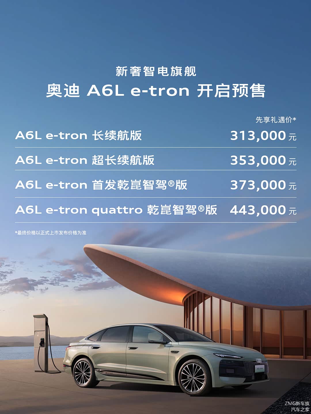 活动现场,一汽奥迪销售有限责任公司执行副总经理郭永锋宣布全新奥迪A6L正式上市,售价为32.29万元-43.59万元,多重上市尊享权益同步推出;与此同时,基于 PPE豪华纯电平台打造的首款电动轿车奥迪 A6L e-tron也开启预售,预售价格为31.3万元-44.3万元,预售权益同步开启。