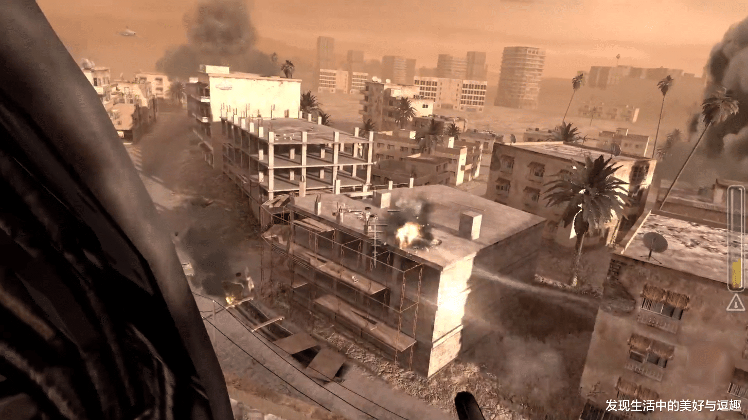 游戏中有一个场景,坐着直升机,操作机枪俯视攻击下方的敌人时,那废墟大楼的场面让我感受到了次世代机能的强劲,太逼真了。