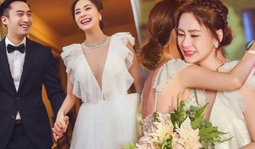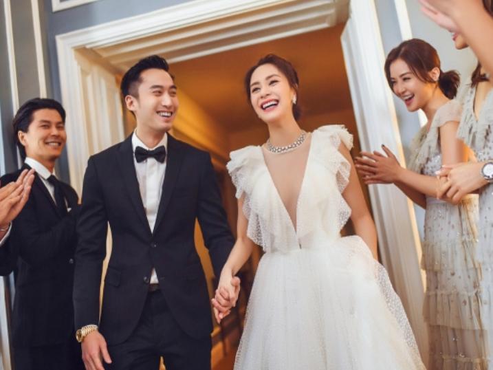 2018年两人在举行了盛大的婚前派对,到了婚礼的那一天,她激动得都哽咽了,说能遇到这段感情真的不容易。