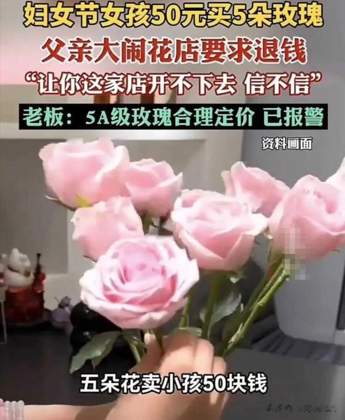 在爸爸看来,5朵花50块钱,这太坑人了。