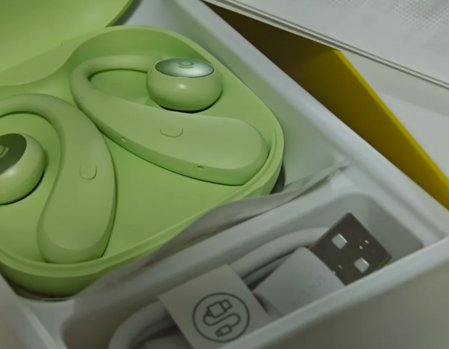 充电盒的体积控制得比较紧凑,磨砂质感的外壳不会轻易沾染指纹,光合绿、星月米等配色也比较清爽,夏天戴着不会显得沉闷。官方称之为“26°错位夹角设计”的耳挂结构,配合0.6mm记忆钛丝,主打的就是运动时的稳固性。