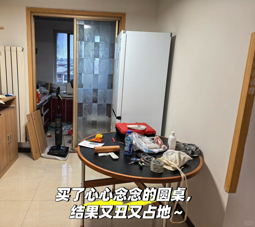 不过当大家入住之后就会发现这种大尺寸的圆形餐桌实在是太鸡肋了,不仅特别丑,而且很占用地方。