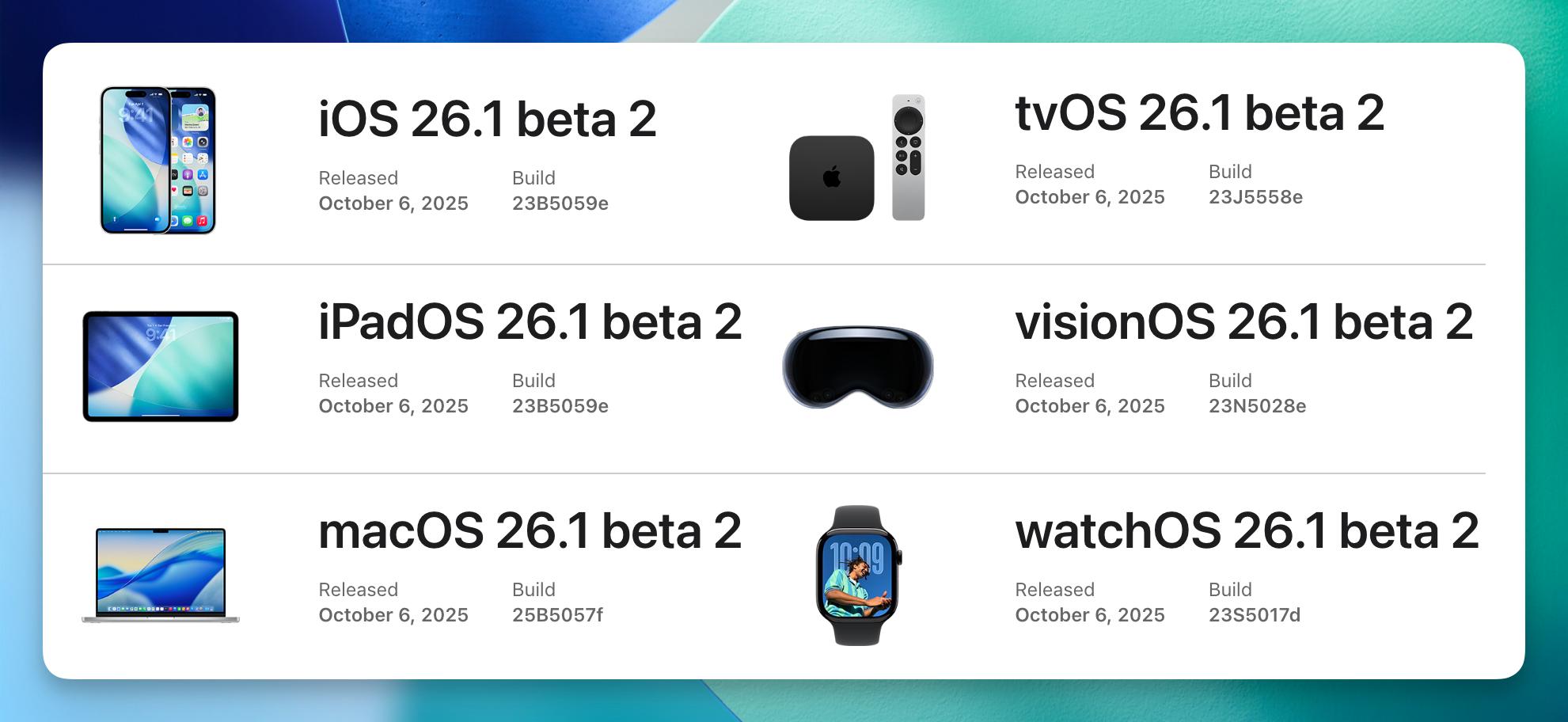 今日(10 月 7 日)凌晨,苹果向参与测试的设备推送了最新开发者测试版系统更新,包括 iOS 26.1 Beta 2 在内: