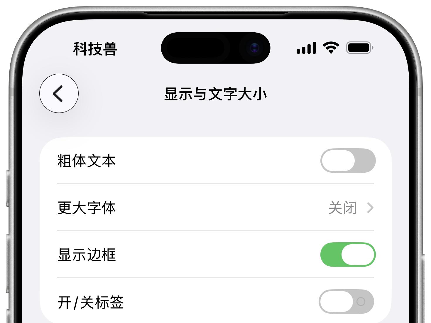 辅助功能按钮外观调整辅助功能显示与文字大小中,“按钮形状”开关被替换为新的“显示边框”选项。