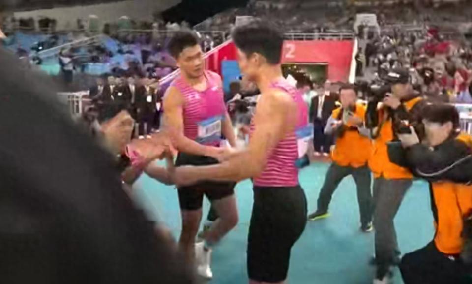 北京时间11月20日,苏炳添参加第十五届全运会男子4X100米接力决赛,与广东队一起以38秒71获得第四名。赛后苏炳添在现场发表了自己的退役感言。而在他发表退役感言前,刚刚跟他一起参赛的广东队年轻队友,像2017年伦敦世锦赛100米决赛后,贾斯汀-加特林为博尔特行跪拜礼那样,跪地向苏炳添行跪拜礼。