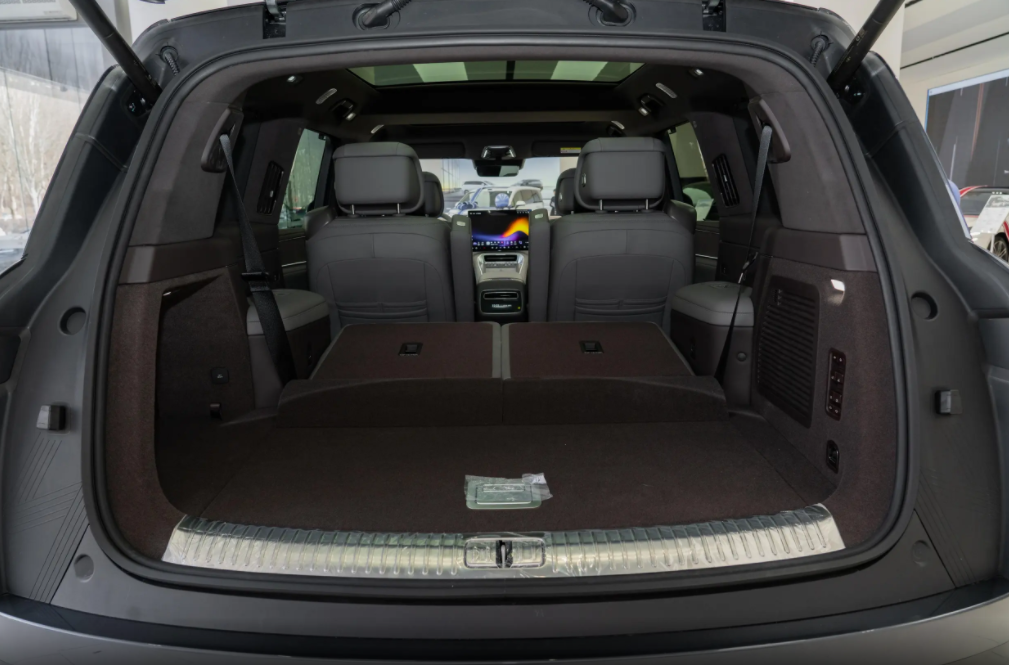 此外,腾势N9 DM的第二排座椅和第三排座椅还可以完全放平,这样便可以让车辆内部拥有一个大的躺平空间,无论是装载货物,还是露营的时候当做一个休憩空间,都是没啥问题的,再加上该车内部的双层门冰箱,我们还可以喝到适季的饮品,对于喜欢露营的朋友们来说,这个功能的实用性还是很强的。更何况,腾势N9 DM还拥有6kW的对外放电功能,像野外露营的时候,腾势N9 DM还能为多个小电器进行供电,这也让我们的露营生活更加的轻松便捷。