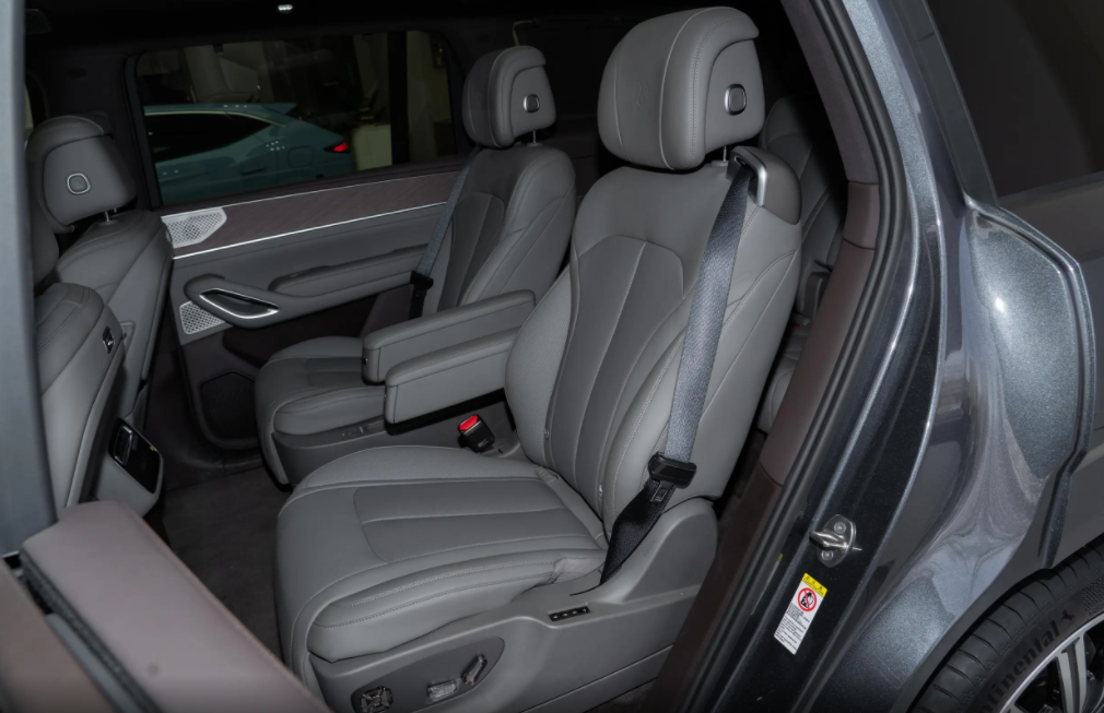 值得一提的是,腾势N9 DM在座椅方面采用了2+2+2的大六座布局,其中第二排座椅独立式的设计,且座椅中间的过道也比较宽,在我们进出第三排的时候也是没啥问题的,同时在座椅的用料方面,腾势N9 DM也是采用了真皮材质包裹,在触感上较为细腻,并且该车的第二排座椅也是两座设计,还支持电动调节,再加上零重力座椅的存在,在整体的乘坐舒适性上还是不差的,但有些可惜的是,腾势N9 DM的零重力座椅配置只有顶配车型才有,不过该车的第三排座椅也拥有电动调节功能,即便是长途出行也是没啥问题的。