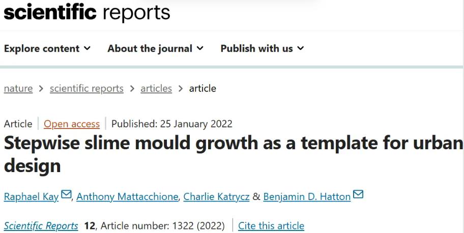 图 | 拉斐尔的关于黏菌的相关论文(来源:https://www.nature.com/articles/s41598-022-05439-w)