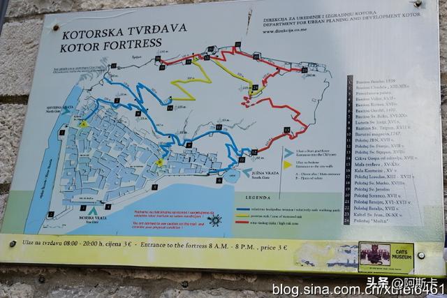 (1)不得不说黑山在前南斯拉夫共和国联盟时期,本身就没有什么工业基础,全境内大部分为山区,平原很小。故农业也不发达。独立后的黑山虽然不是欧元区,但这个国家自主决定全国使用欧元,所以来黑山旅游,它的货币就是:欧元。黑山重视旅游业,它的古城科托尔就是它的旅游主打品牌了。图:科托尔古城的城市地图。