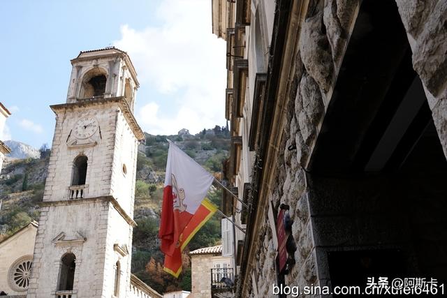 (8)城头飘扬着红色的黑山国旗告诉我们科托尔到了。