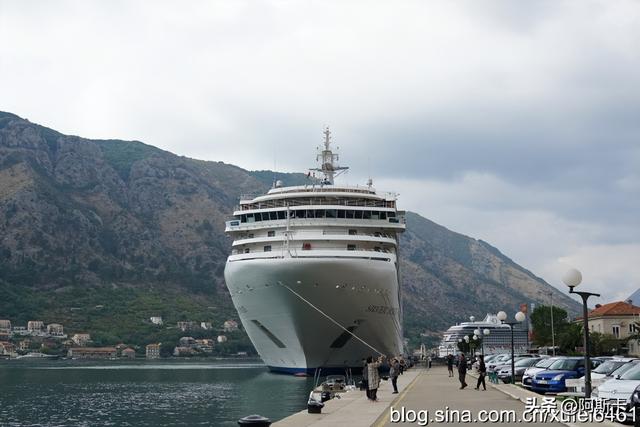 (43)但是,在二十一世纪的现代,发展经济才是一个国家的方向。这是环亚德利亚海的意大利游轮,它从意大利的威尼斯,克罗地亚的各沿海古城再到黑山的科托尔等古城停靠。游轮的右侧就是古城科托尔。