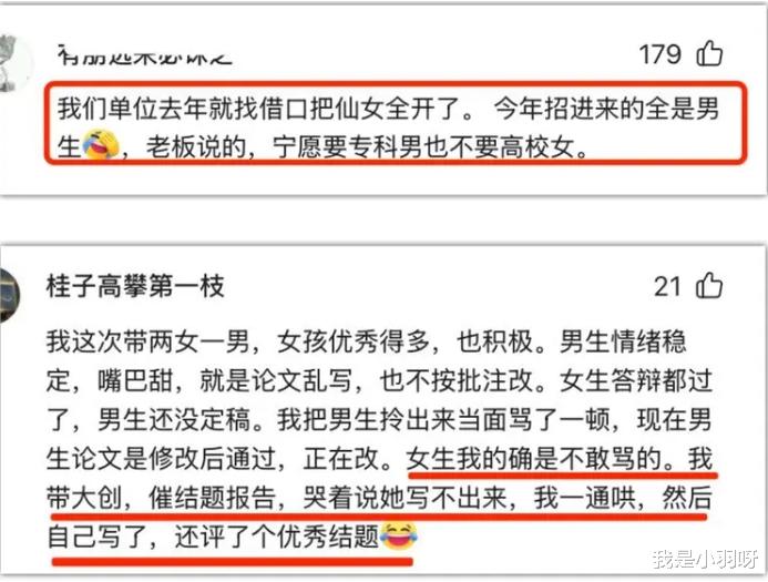 学校“心软”: 对女生可能无形中降低了标准?怕批评狠了哭?论文糊弄过去算了?结果就是学术标准滑坡,抗压能力也没练出来。就像那个例子,哭了18分钟,论文一个字没改!