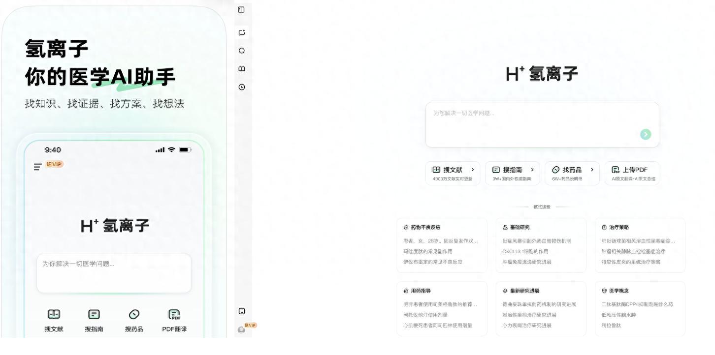 该产品已进入实际应用阶段,主要面向临床、科研领域的医生群体。据了解,“氢离子”主打“低幻觉、高循证”核心能力,所有回答均有权威出处,支持一键溯源、直达信源,致力于打造医疗领域幻觉率最低的AI助手。