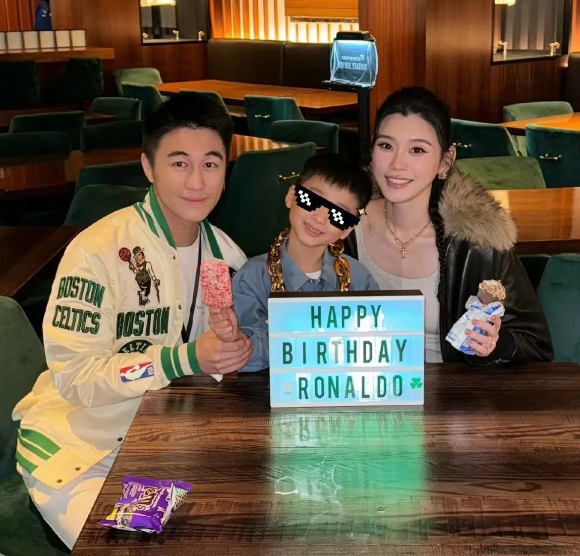 何广燊迎来6岁生日,奚梦瑶在社交平台亲切称呼儿子为“我的小宝贝”。一家三口的合影中,何猷君身着棒球服与儿子亲密相依,小朋友笑容灿烂,单眼皮、高鼻梁的模样自带喜感。