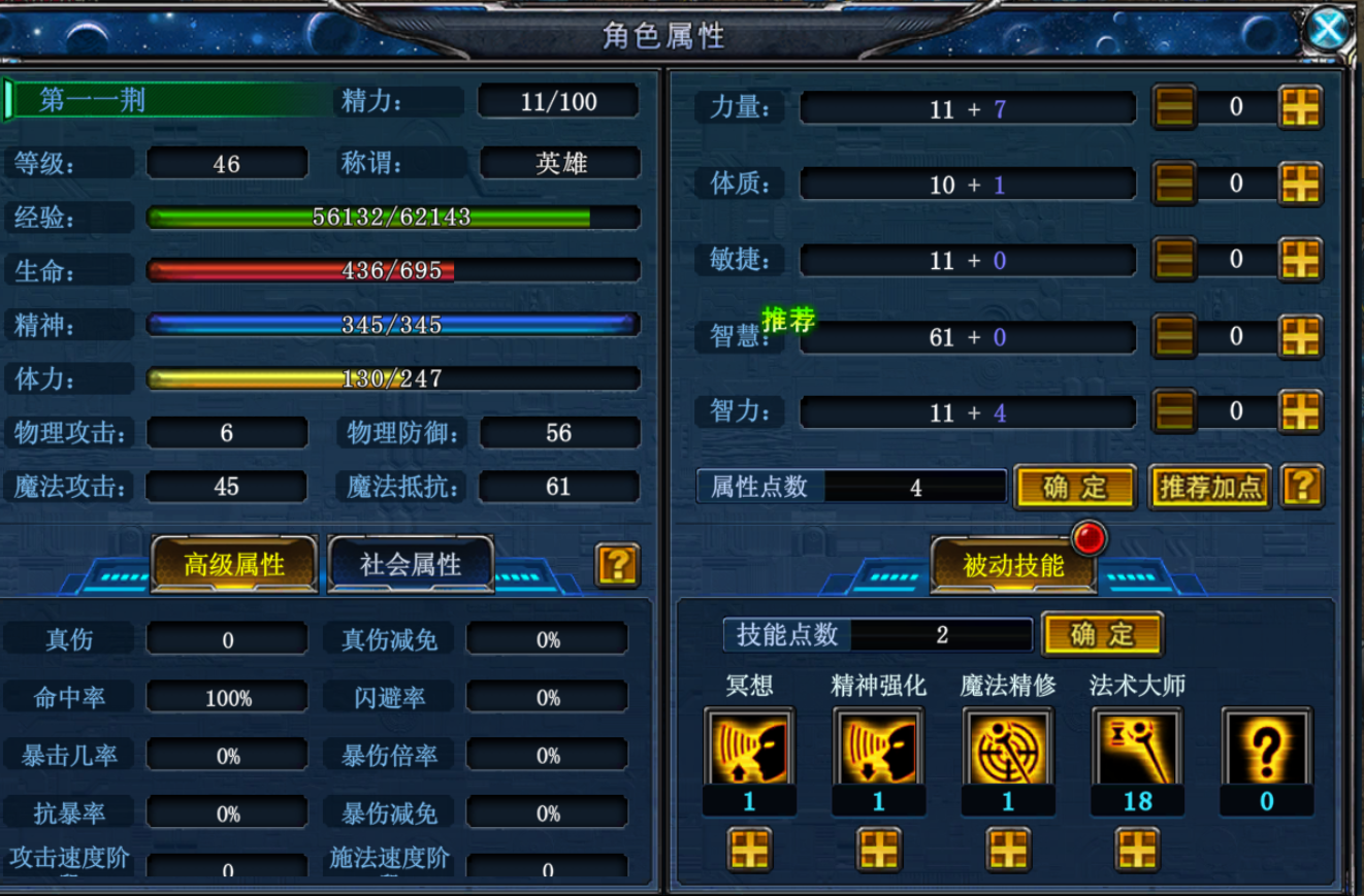 家人们快拿小本本记!法师属性这事儿小凯踩过坑,听我的全点智慧准没错——这玩意儿直接决定魔攻高低,不点它技能伤害就是没劲儿! 开局创角色时别着急确认,属性能重置,一定把智慧调到20再创建!就多这一步,开局伤害就比别人高一截,刷怪打本都快人一步。 被动技能俩核心必须先拉满:第一个法术精修,点满直接加一大截魔攻,伤害炸到敌人还没靠近就残血;第二个法术大师,提速施法速度,技能放得又快又密,直接覆盖全场,对手想贴脸根本没机会! 至于精神强化和冥想,后期随便点两下就行。这俩破技能除了省点蓝药,半点儿战力都不加,前期把资源砸这儿纯纯浪费,真可惜!