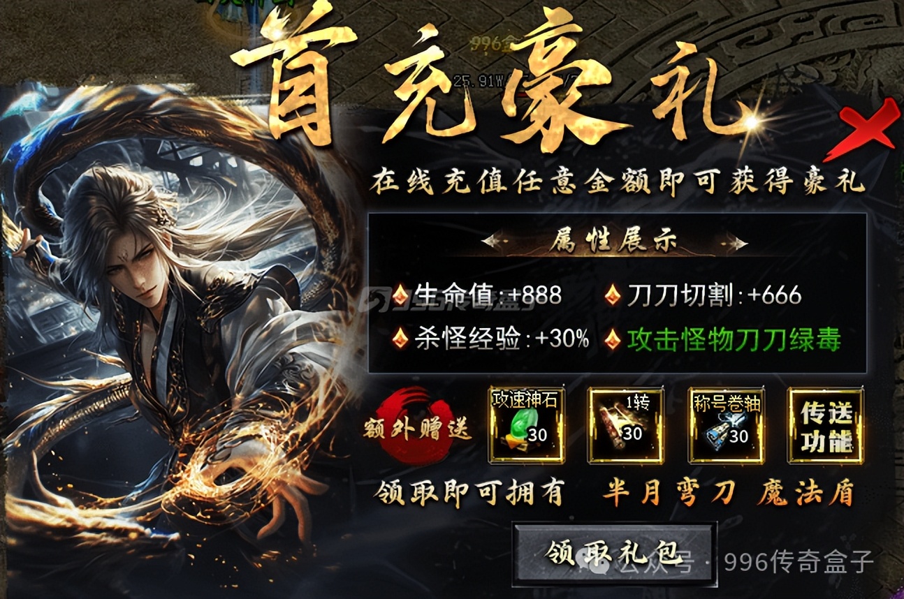 大极品攻速高爆版本,简单概述一下,就是很爽的意思!玩法很多,喜欢沉浸式刷怪的兄弟应该会喜欢,比较适合上班族,挂机收菜!首先说一下氪金点,任意金额可以领取首充礼包,加超多属性和刀刀绿毒,还会额外赠送材料和传送功能,这个传送功能还是很重要的,跑图抢BOSS非常实用!特权38,给特权属性,解绑,可自由交易上架!