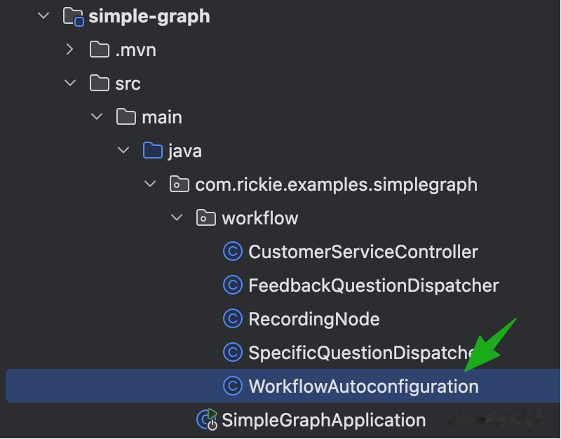 在示例项目中创建一个 Spring Boot 配置类(例如 WorkflowAutoconfiguration),如图所示: