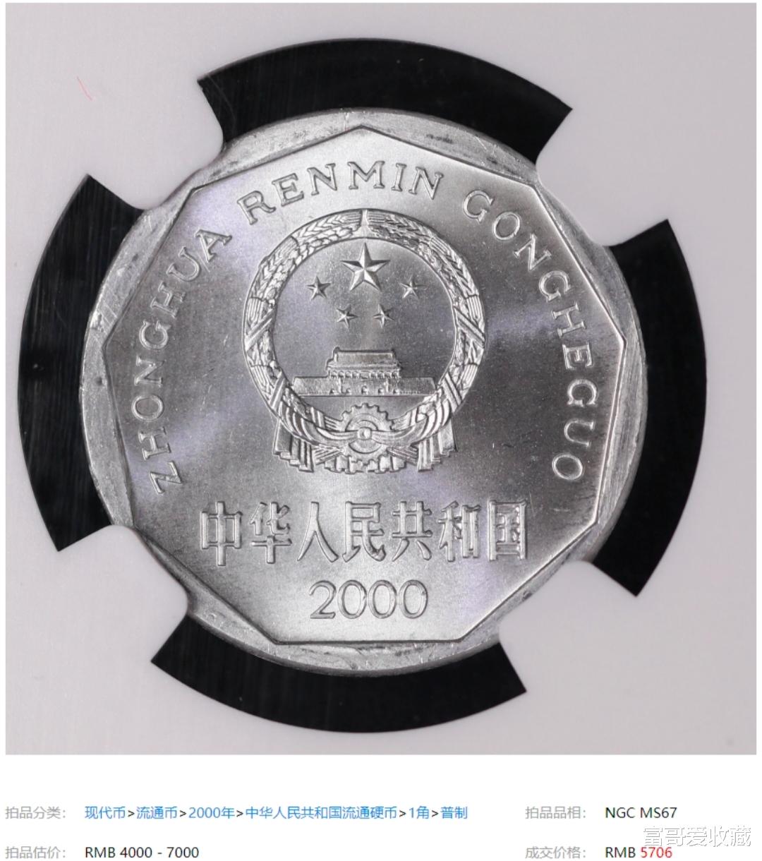 上面这枚2000年的菊花1角,就拍出了5706元。