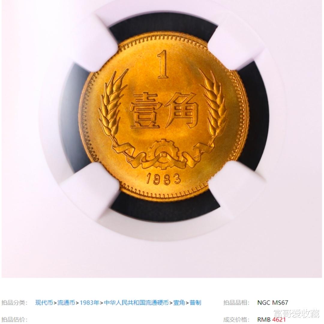 而上面这枚全新的1983年麦穗1角,就拍出了4621元。