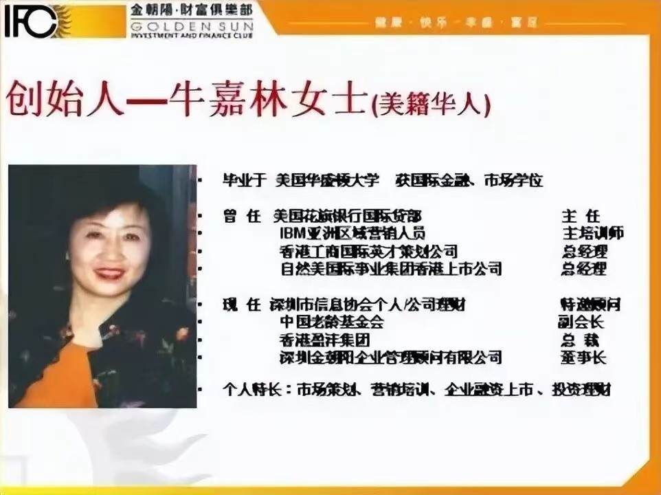 该机构创始人牛嘉林,在十多年前打着“让10万中国人实现财务自由”的口号,吸引来大批学员。