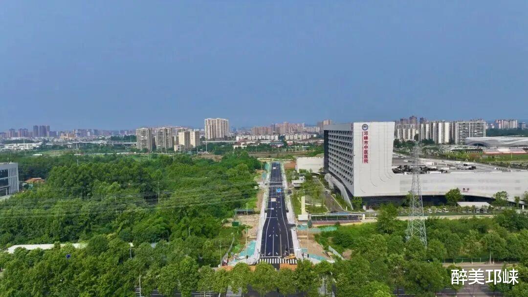中医院南侧道路,该道路起于邛崃市中医医院新院区西侧规划道路,止于五板桥路,全长438米。道路绿化郁郁葱葱,交通标线清晰醒目,交安设施、路灯照明等已全部安装到位。道路专门设置了非机动车道和人行道,两侧配备了座椅、垃圾桶等公共配套设施,慢行系统完善,休闲设施齐全。