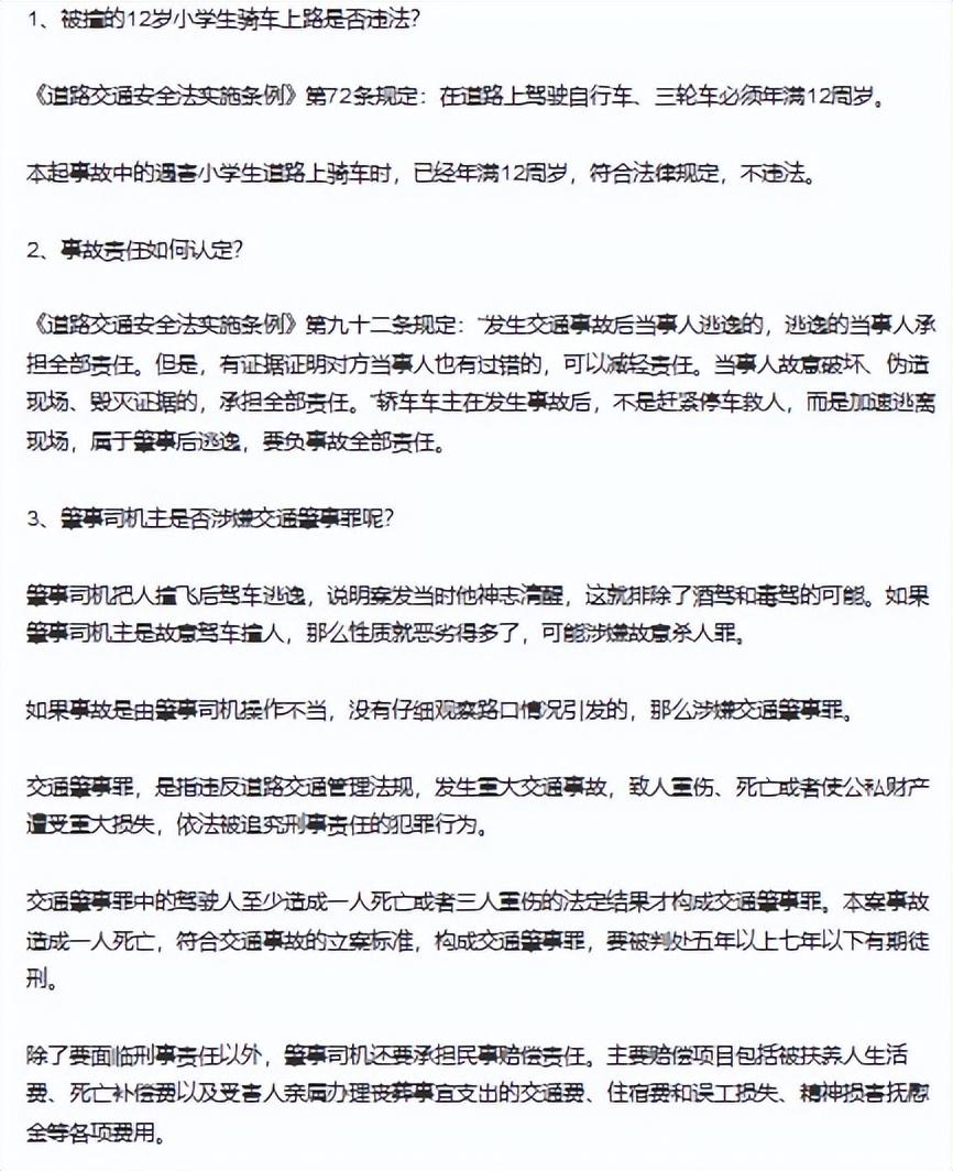 二就是责任划分问题,孩子正常骑车被撞,本来就应该肇事车辆负大半的责任,更别说肇事逃逸了,这肯定要让车主负事故全部责任了。