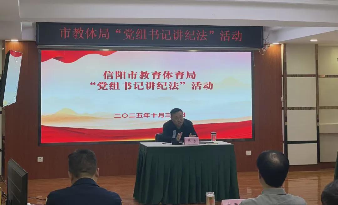 办好“局长讲堂”,做到以案为鉴绷紧纪律之弦。10月30日,局主要负责同志以“书记讲纪法”为主题为机关及局直系统党员干部讲纪法,结合教体领域典型案例,从国家法律法规、党内法规、教育规章三方面剖析违纪违法行为,明确“红线”“底线”。会议要求全体党员干部以案为戒,严守纪律规矩,将作风转变转化为推动工作质效提升的实效,为信阳教体事业高质量发展提供坚强保障。
