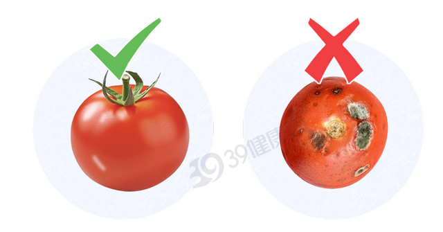 即便是红熟的西红柿,也不能大意。如果果皮上出现褐色或黑色斑点,很可能是被交链孢菌感染了。