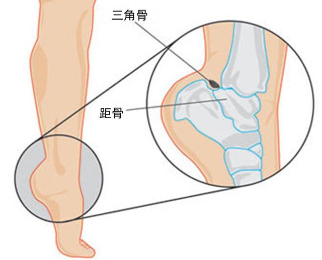 后踝撞击症有些人的脚踝后部有一块小骨头(称为三角骨)或骨性隆起。可能会在踝关节中产生摩擦,三角骨并不一定会引起疼痛。但如果它们卡在关节中,踝关节运动时引起疼痛,它们因过度使用或创伤而受到刺激时,就会出现三角骨综合征。尤其当踮起脚尖时疼痛最明显,后撞击征的主要症状包括: