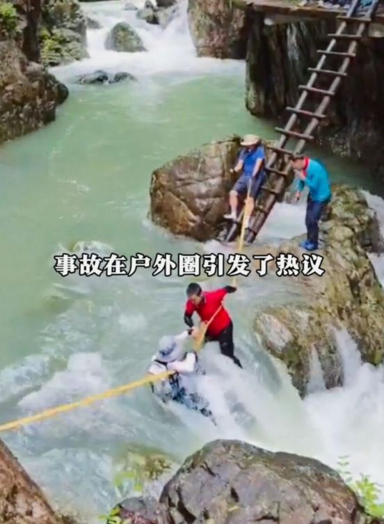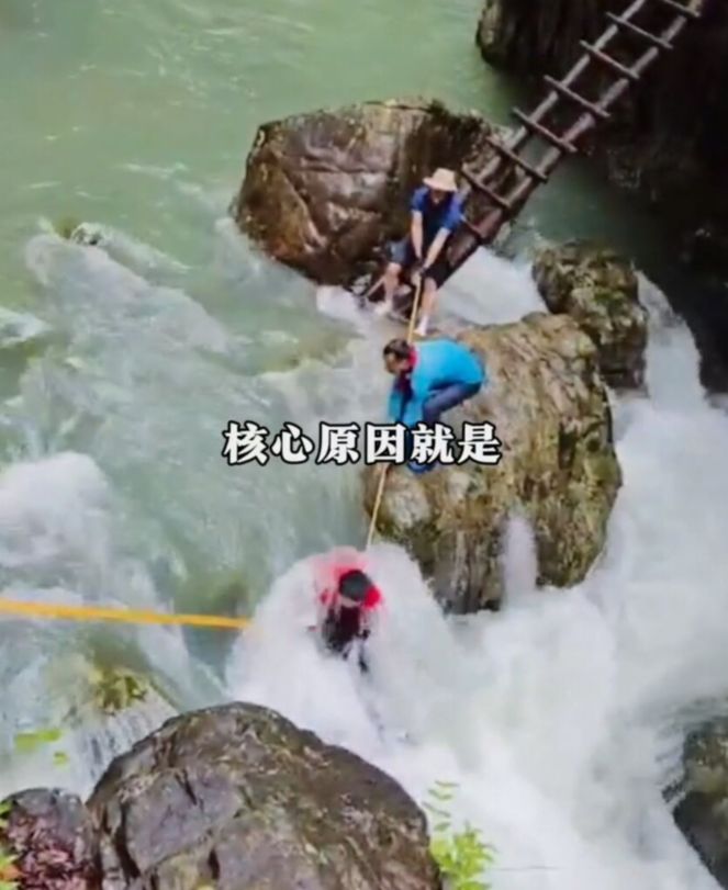 一开始,红衣男和女生横渡峡谷水道时,原本女生就没站稳,草帽男拉了一下绳子后,导致女方失去平衡,最终被冲下溪流,很多网友认为,草帽男友很大的责任,而且岸上拍视频的人也不慌不忙,或许大家都没有意识到,事情会有这么严重。