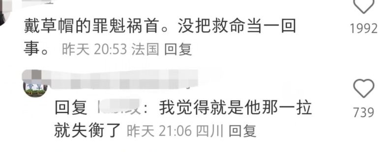 不少网友还注意到,岸上的草帽男子在这样的危机时刻,居然还在抽烟吞云吐雾,完全看不到他有任何紧张,一边拉绳子,嘴里的烟也舍不得扔掉,而且草帽男上方也有两个人,他们完全没有想到用梯子去救人。