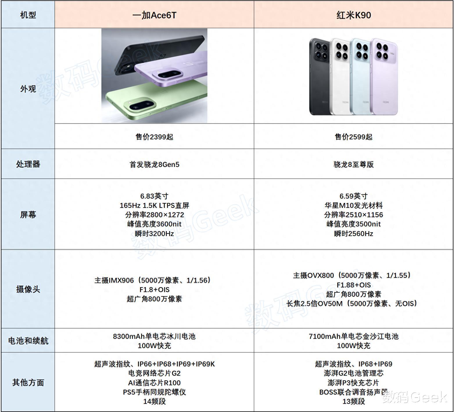 硬核性能的代表,我认为一加Ace6T与红米K90是榜上有名的,他们两属于定价相近却各有侧重,分别代表了性能至上与均衡体验的两种不同哲学。如果你正纠结于如何选择,这篇深度对比将从六大维度为你剖析,帮你找到最适合自己的那一款。