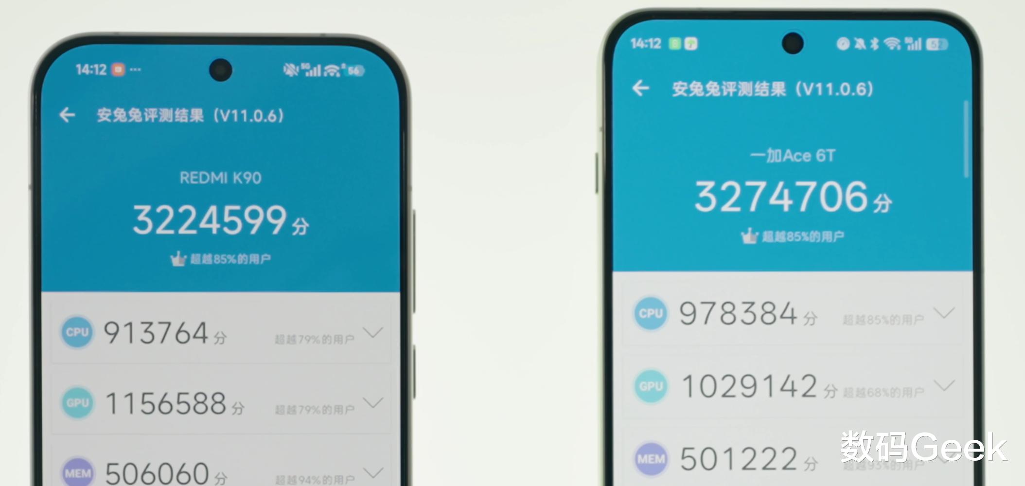 小结:如果你是硬核游戏玩家,追求极致稳定的高帧率体验,一加Ace6T确实更值得入手;如果只是偶尔玩玩游戏,两者都能满足需求。