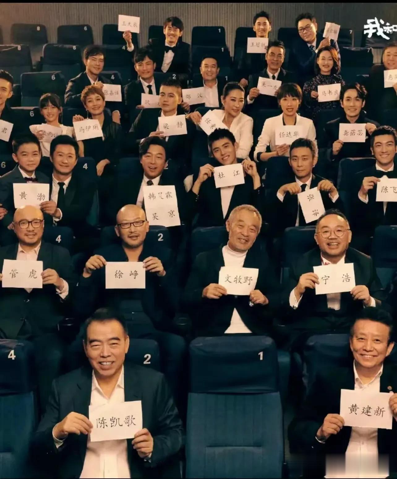 看着像照片合影里,有很多演艺圈的大腕,和一线演员,陈飞宇在中间位置笑颜如花,看得出来很放松,没有拘谨和不安的感觉,松弛感拉满。