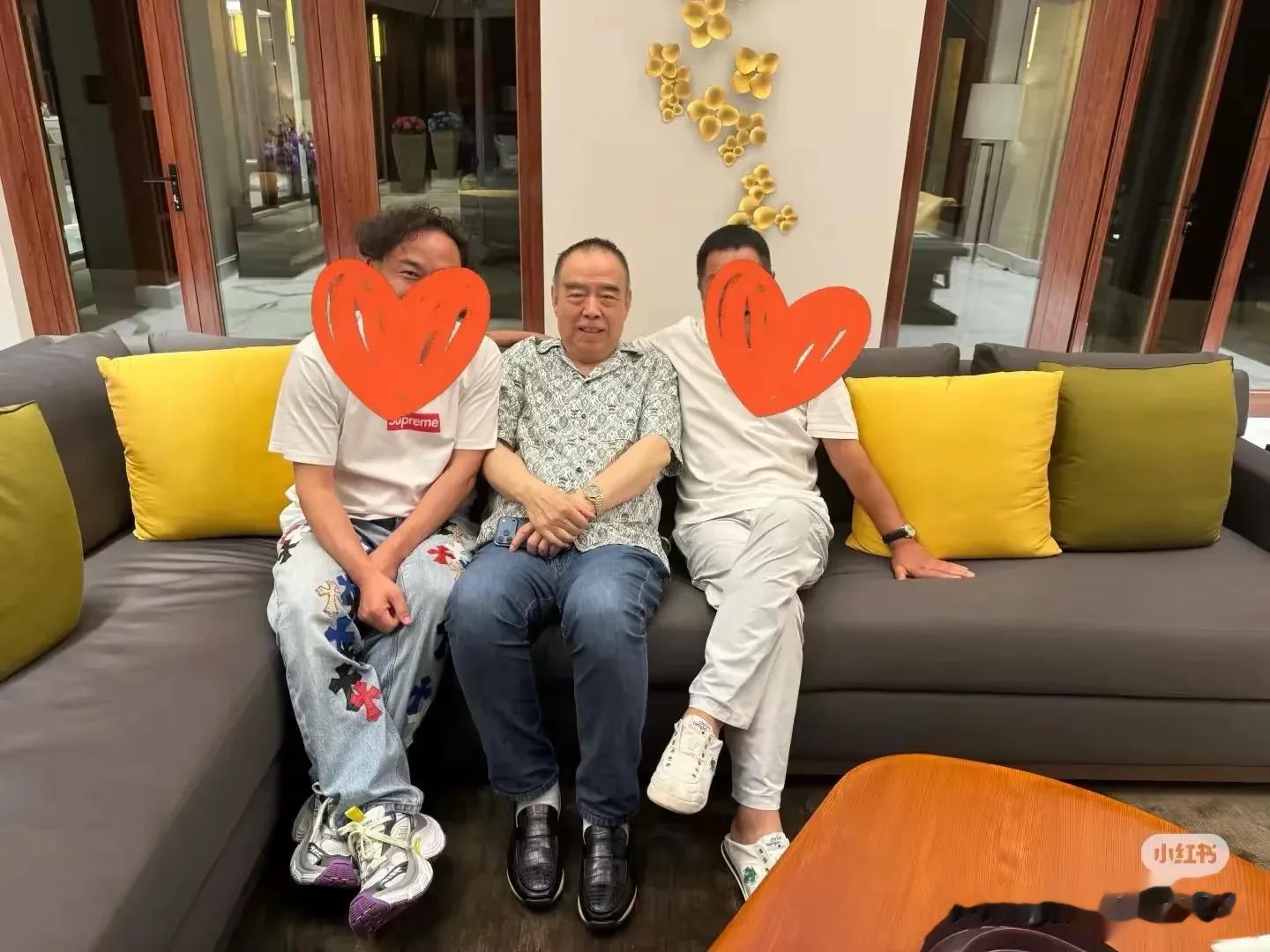 这张照片里,陈凯歌坐在沙发中间位置,他的左右两侧各有一位好友,看得出来他本人很开心,面对镜头笑的合不拢嘴。
