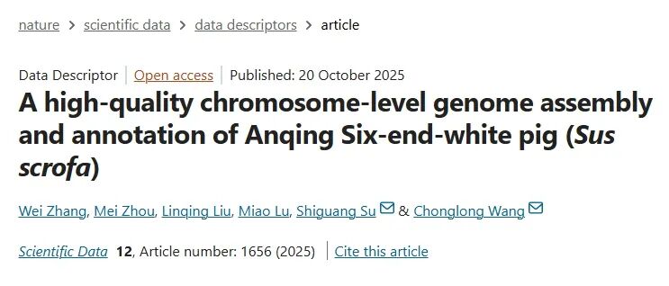 10月20日,安徽省农业科学院王重龙研究员团队在Scientific Data上发表的A high-quality chromosome-level genome assembly and annotation of anqing Six-end-white pig (Sus scrofa)的论文,公布了全球首个染色体级别的安庆六白猪高质量参考基因组。这项成果不仅是对一个珍贵产业化物种的生命天书进行了首次精装校注,更标志着我国在动物基因组组装这一前沿领域达到了世界领先水平,为本土种质资源的保护与利用奠定了坚实的基石。