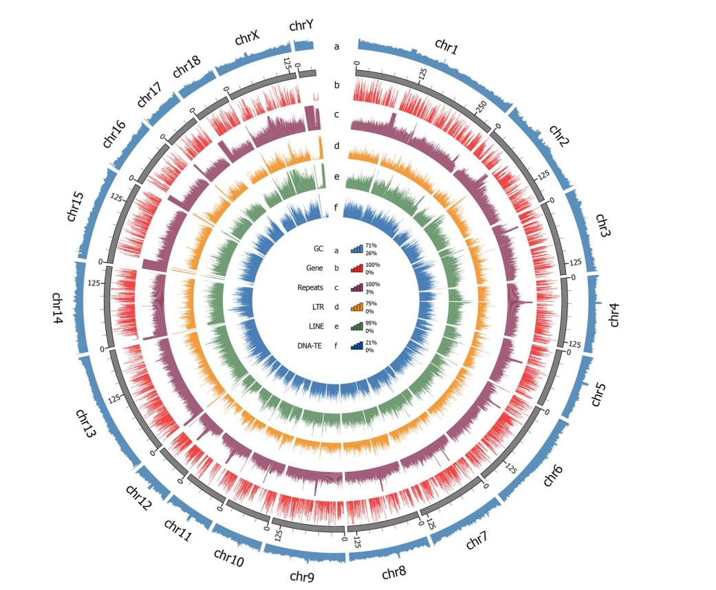 研究发现,安庆六白猪基因组中超过43% 是重复序列。它们虽不直接编码蛋白质,却像剧本里的舞台指令,对维持结构稳定和调控基因表达至关重要。