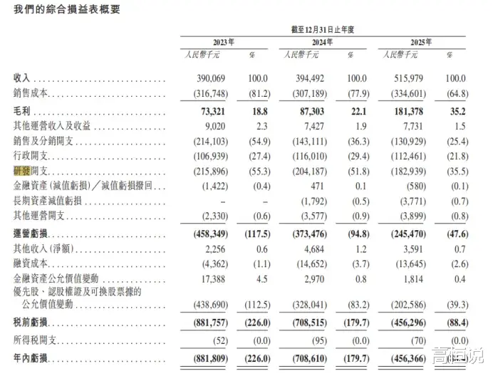 科技产业时评人彭德宇对我们表示,这在消费电子行业意味着:当增长不建立在销量扩张上,规模效应难以形成,成本也难以被摊薄。招股书数据显示,2023—2025年研发费用分别为2.16亿元、2.04亿元、1.83亿元,占营收比重55.3%、51.8%、35.5%;销售及分销开支分别为2.14亿元、1.43亿元、1.3亿元,占比54.9%、36.3%、25.4%;行政开支1.07亿元、1.16亿元、1.12亿元,占比27.4%、29.4%、21.8%。