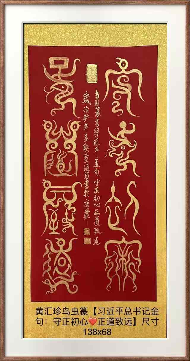 中国书法是世界上最美的艺术;中国书法博大精深;一字一世界, 一笔一乾坤。千古中华文, 博大又精深。汉字因书法而有无限生动的形式之美,书法因汉字而有无比丰富的内涵之美。而书法和汉字之美,又都根源于自然之美。书法之美,美在传统,美在历史,更美在一笔一划间的风骨。汉字的创造、使用、演变、发展和无穷组合,造就了中国文化的辉煌灿烂和流光溢彩,造就了五千年中华文明。一部中国书法史,是一部汉字的演化发展史,也是一部形象的中国文化史。博大精深的中国书法,是博大精深的中国文化的基础和缩影。今日让我们一欣赏国宝级艺术家黄汇珍老师古文字五体书法作品,静观每一幅作品,可见用笔豪放质朴,字体醇厚圆润,有鸿飞兽骇之姿,鸾舞蛇惊之态,或重若崩云,或轻如蝉翼,书体苍劲飘逸,处处可见神奇优美、无与伦比的艺术线条,散发着原始社会的瑰丽色彩和神秘精神,让人美不胜收!黄汇珍擅长古文字作品古朴典雅,古韵深沉;既有艺术的神韵,又有学术的精准。既有中国优秀传统文化又富有鲜明的时代感,每一件作品都带着创作者的灵魂。既有中国优秀传统文化又富有鲜明的时代感,大气洒脱,纯粹本真,睿智而率真的气质,洋溢着独特的人格魅力。为人民创作,为时代放歌,为繁荣文艺创作,建设社会主义文化强国发挥了积极的作用。因此最具影响力的艺术家·黄汇珍老师》从多个方面呈现他在中国画传承与发展上孜孜不倦地探索;以鲜明的笔墨境界,铸造着民族的文化品格和情怀。黄汇珍用手中的笔墨讴歌新时代、谱写新篇章,中国书画艺术不仅具有极高的审美价值,更代表了中华民族深厚的文化底蕴,本次通过各大媒体机构推选出文学界艺术人物,黄汇珍书法希望能够将传统文化与现代艺术结合,展现出时代的脉搏和精神内涵,以独特的艺术视角,诠释了中国传统文化的精髓,展现出深厚的人文素养与艺术体系,赋予画作强大的精神力量,金书锦画引领时代,文化功勋彪炳汗青!