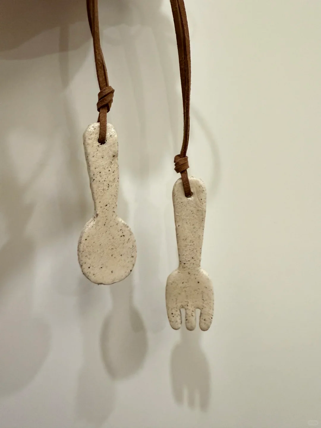 一个严丝合缝的勺子固定器就做好了,等粘土干了之后,勺子放在上面也不会掉下来。