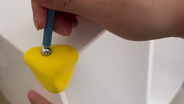 把粘土滚成球,然后直接压在桌角,然后拿出粘土自带的工具,按吧按吧,捏吧捏吧就能直接做好了。