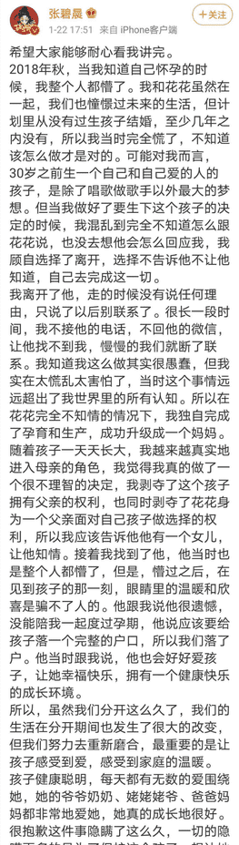 几年后,张碧晨带着一个孩子突然出现,并公开承认孩子是华晨宇的。这突如其来的消息,让所有人都措手不及。张碧晨在长文中解释了事情的来龙去脉,她说,自己在得知怀孕后,选择独自离开,直到孩子需要落户时才告诉华晨宇。华晨宇也很快做出了回应,承认了孩子的事实,并表示会共同抚养孩子。