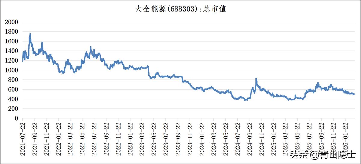 从大全能源上市以来的总市值走势看,其历史峰值逼近1700亿元,而当前总市值已回落至500亿元以下。若以前高作为本轮修复的目标位,则当前市值具备至少翻倍的基础,若叠加行业景气度回升,3倍涨幅的弹性空间亦具备逻辑支撑,这一预期与多晶硅价格向历史中枢回归的趋势形成了直观呼应。