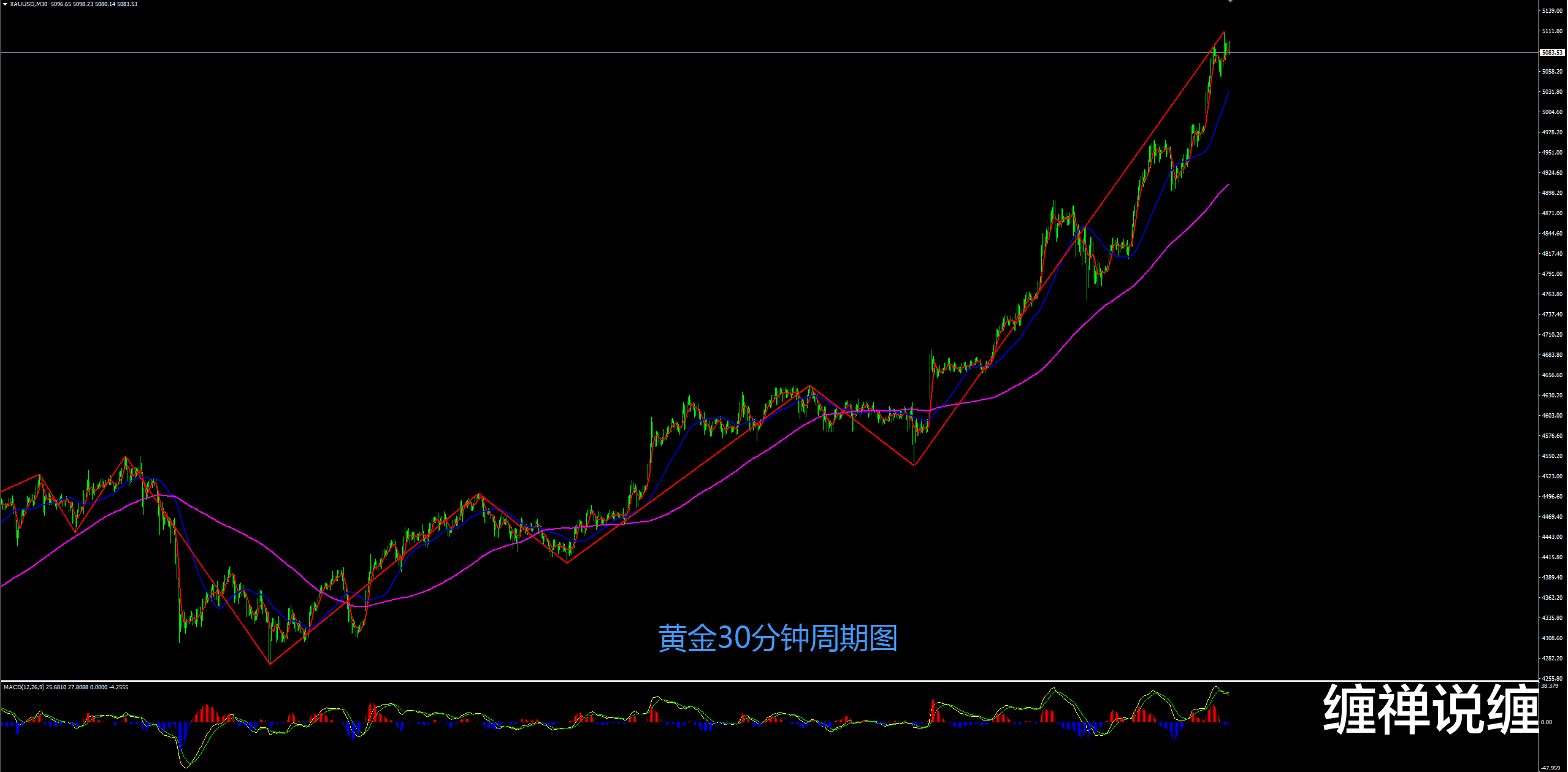 黄金30分钟也延续强势,黄金如果突破5112,那么黄金30分钟也将有望延续上涨。不过短期黄金也需留意冲高回落,还是耐心等待回撤再继续顺势跟进。黄金回撤不破4885,那么黄金还是有望延续强势,耐心等待回撤机会。黄金避险再创历史新高,黄金进入五千时代!