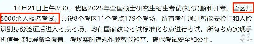 全区2025年全国硕士研究生招生考试共5000余人报名考试。