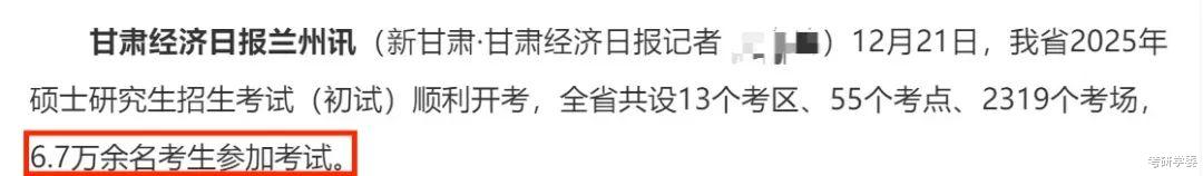 甘肃省2025年硕士研究生招生考试(初试)6.7万余名考生参加考试。